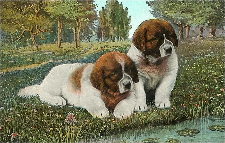 DG-10 St. Bernard Puppies - Vintage Image