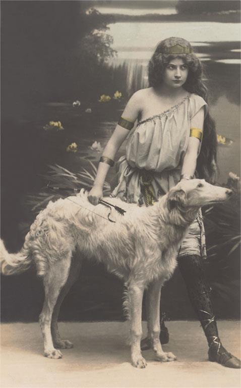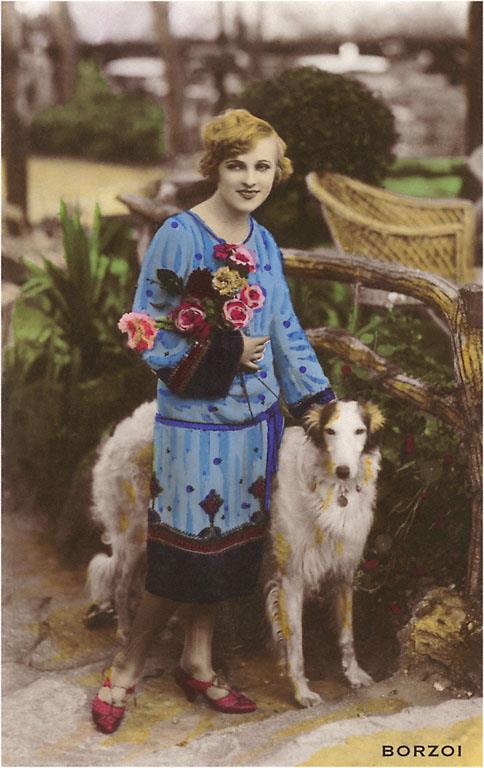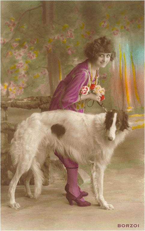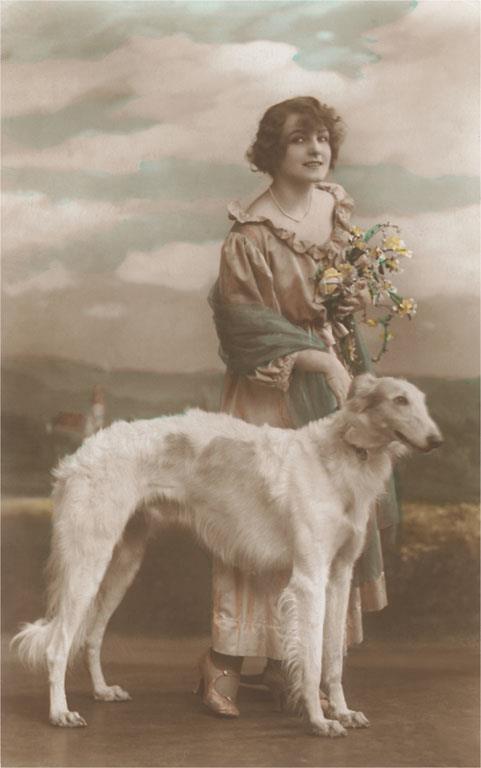 DG-187 Woman with Borzoi - Vintage Image