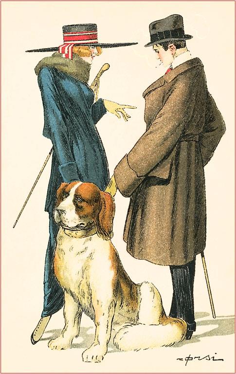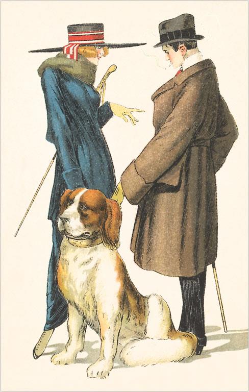 DG-228 Dogs out Walking - Vintage Image