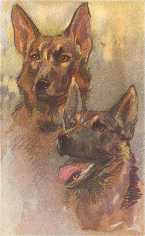 DG-91 Two German Shepherds - Vintage Image