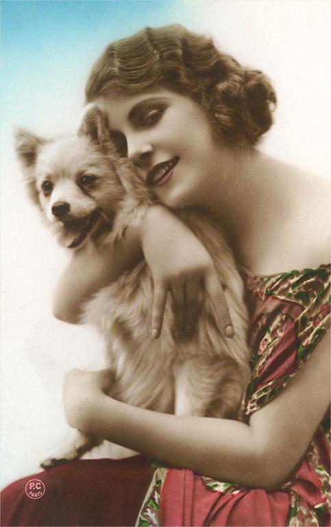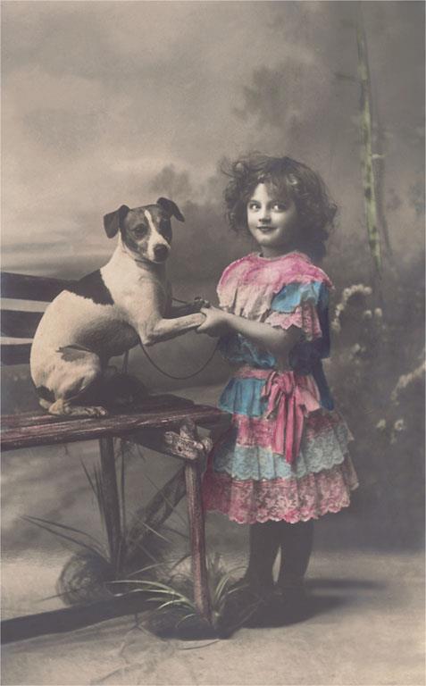 DG-210 Girl with Small Dog - Vintage Image