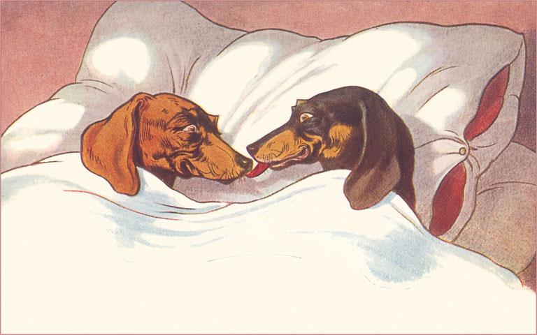 DG-208 Dachshunds in Bed - Vintage Image
