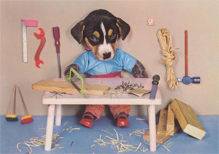 DG-225 Dog at Work Bench - Vintage Image