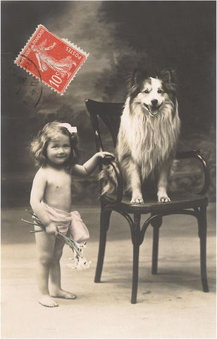 DG-86 Baby Girl in Diaper with Smiling Dog - Vintage Image