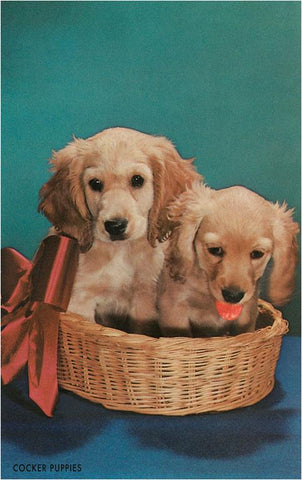 DG-105 Cocker Spaniel Puppies in Basket - Vintage Image