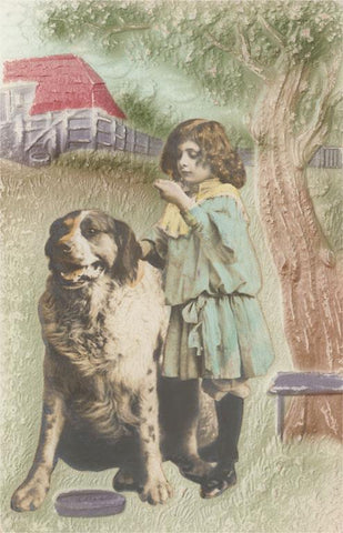 DG-173 Little Girl with Large Dog - Vintage Image