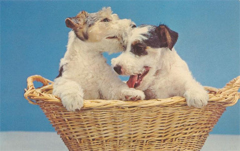 DG-195 Schnauzer Puppies in Basket - Vintage Image