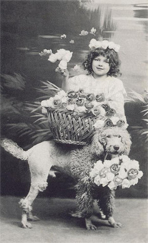 DG-206 Girl, Dog, Flower Basket - Vintage Image