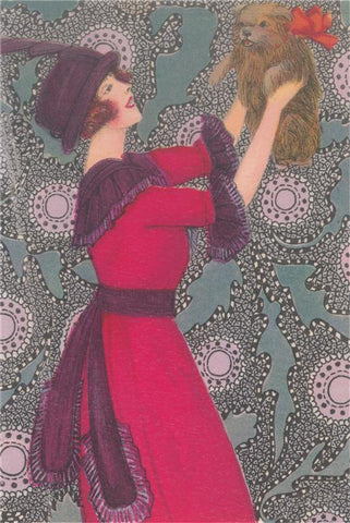 DG-232 Woman Holding Dog Aloft - Vintage Image