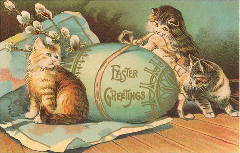 EA-06 Easter Greetings, Kittens with Large Egg - Vintage Image