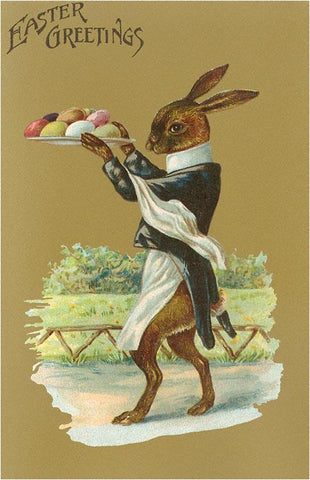 EA-07 Easter Greetings, Rabbit Waiter - Vintage Image