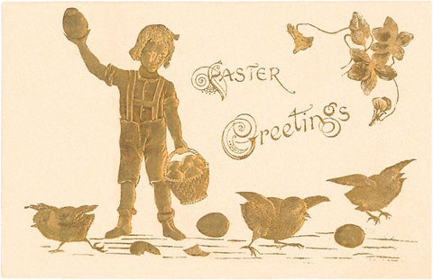 EA-14 Easter Greetings, Gold Boy with Chicks - Vintage Image