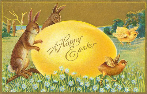 EA-25 A Happy Easter, Rabbits and Egg - Vintage Image