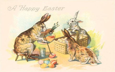 EA-28 A Happy Easter, Rabbit Painting Eggs - Vintage Image