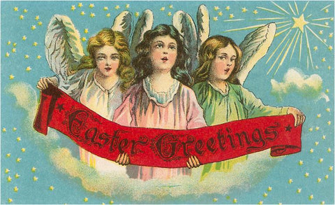EA-103 Easter Greetings, Three Victorian Angels - Vintage Image