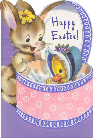 EA-107 Happy Easter, Duckling in Hat Box - Vintage Image