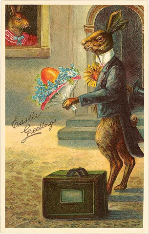 EA-116 Rabbit Suitor Calling on Doe - Vintage Image