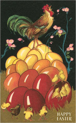 EA-129 Rooster Atop Gold and Red Eggs - Vintage Image