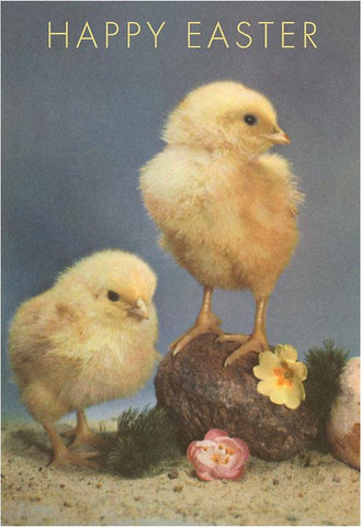 EA-141 Chicks with Rock and Flowers - Vintage Image