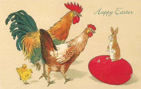 EA-204 Happy Easter, Chickens, Rabbit and Egg - Vintage Image