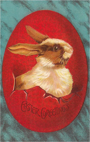 EA-270 Rabbit Bursting from Red Egg - Vintage Image