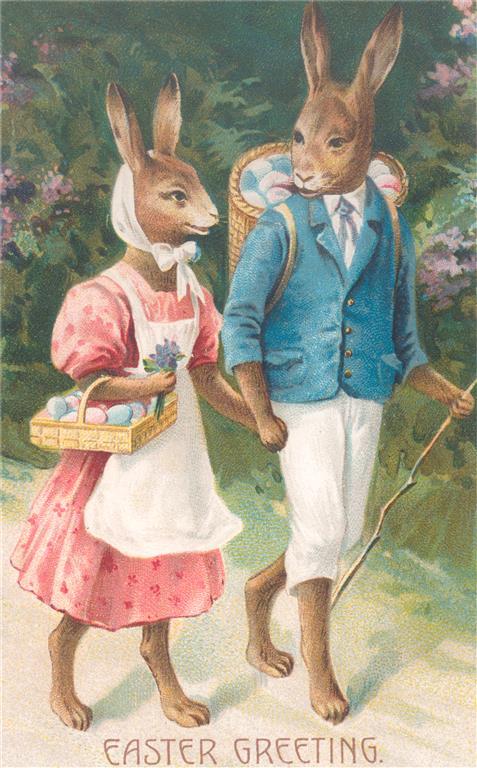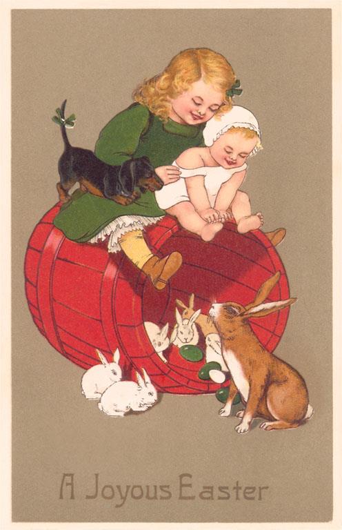 EA-325 Girl, Baby, Rabbits - Vintage Image