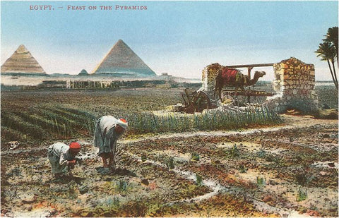 EG-21 Farming by the Nile, Pyramids, Egypt - Vintage Image