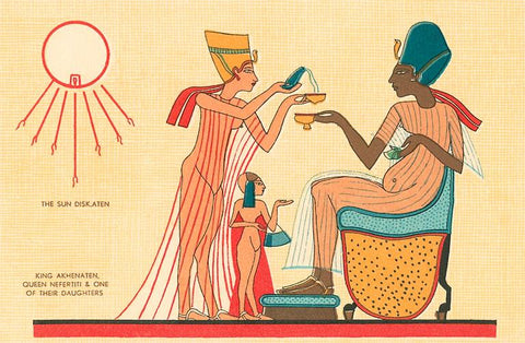 EG-140 Pharaoh Aknaten and Family, Egypt - Vintage Image