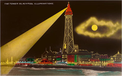 EN-92 Illuminated Tower in Blackpool, England - Vintage Image