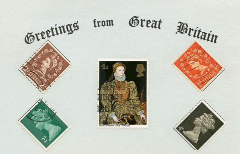 EN-161 Greetings from Great Britain, Stamps - Vintage Image