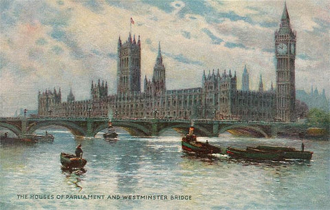 EN-164 Houses of Parliament, Westminster Bridge, London, England - Vintage Image