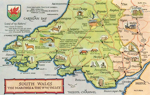 EN-238 The Marches and Wye Valley Map, South Wales - Vintage Image