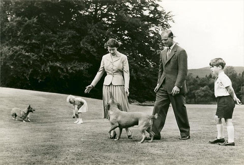 EN-258 Queen Elizabeith and Family on Lawn - Vintage Image