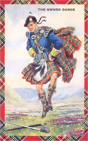 EN-274 Man doing the Sword Dance in a Kilt - Vintage Image