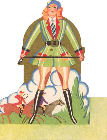 EQ-50 Cartoon Woman Standing in Front of Horse Race - Vintage Image