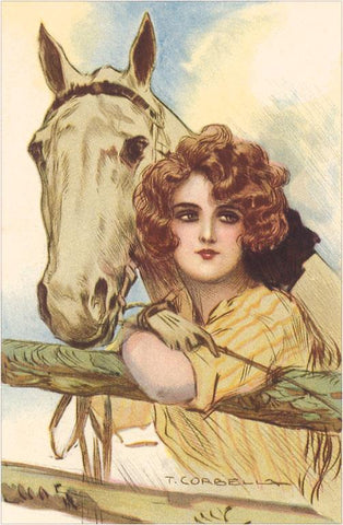 EQ-85 Woman with Horse by Fence - Vintage Image
