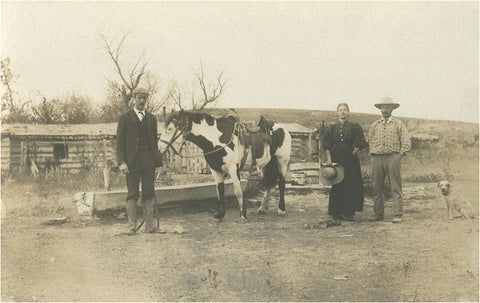 EQ-97 Farm Family with Pinto Horse - Vintage Image