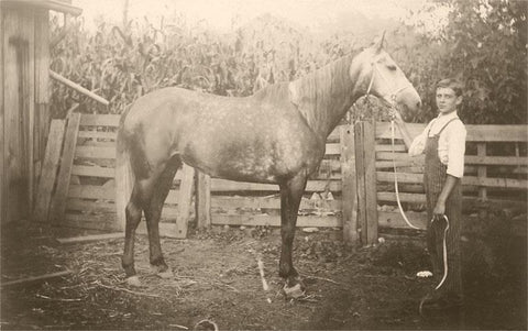 EQ-111 Boy with Roan Horse in Corral - Vintage Image