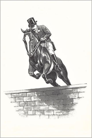 EQ-143 Man on Horse Jumping Wall - Vintage Image