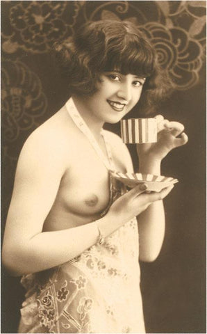 EX-12 Topless Woman with Cup and Saucer - Vintage Image