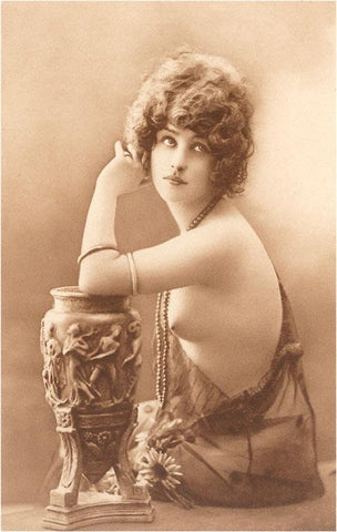 EX-13 Topless Woman with Vase - Vintage Image