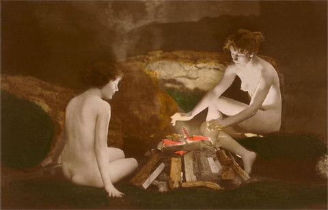 EX-16 Naked Women by Campfire - Vintage Image