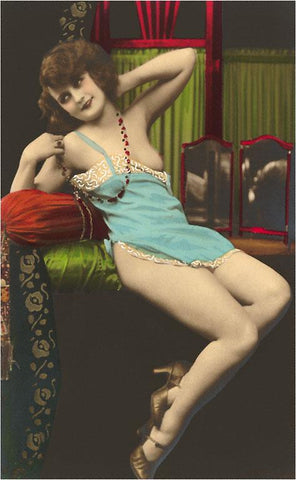 EX-71 Woman in Blue Slip - Vintage Image
