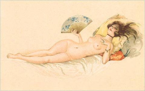 EX-124 Naked Woman with Fan - Vintage Image
