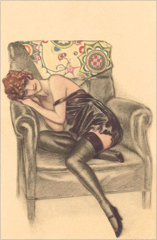 EX-135 Woman in Black Chemise in Chair - Vintage Image