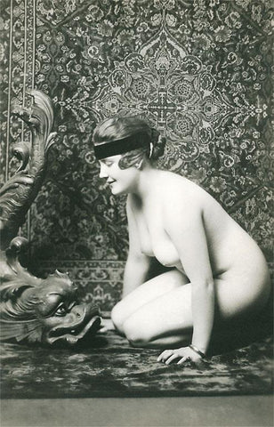 EX-152 Naked Woman, Oriental Rug, Fish Sculpture - Vintage Image