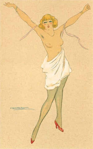 EX-166 Semi-Nude Woman Stretching - Vintage Image