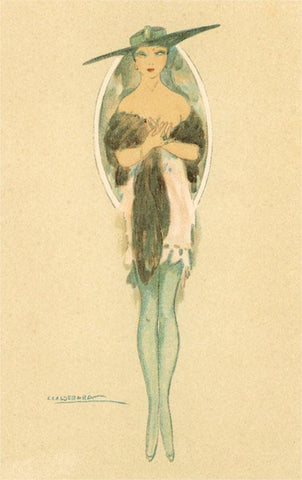 EX-168 Woman in Hat, Fur and Stockings - Vintage Image