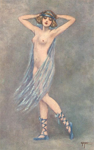 EX-176 Nude Dancer with Veil and Slippers - Vintage Image