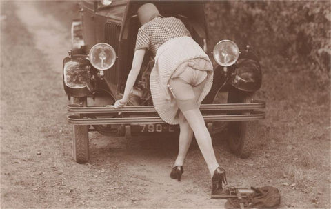 EX-218 Exposed Woman Checking Engine - Vintage Image